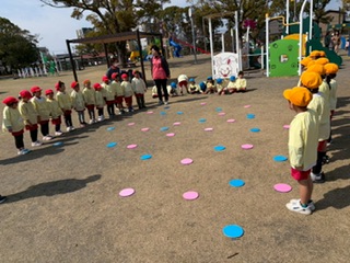 ゲームの後は以上児クラスをシャッフルし、グループに分かれて行動しました。